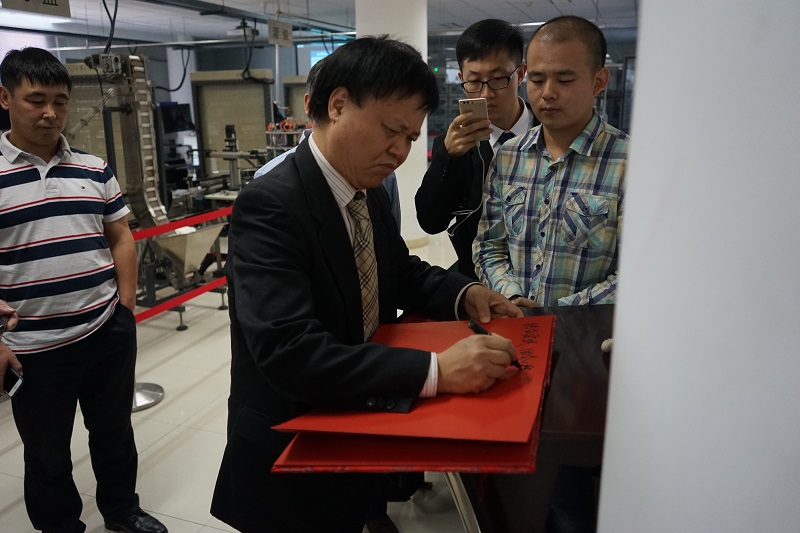 走访过程中,曾孝平专家对中心教师自己研发的实验设备和教学设计方案给予了充分的肯定,并高度评价了实验中心的虚拟仿真中心和项目建设,最后在签到簿题词“结合实践,结合工程,培养创新人才。”