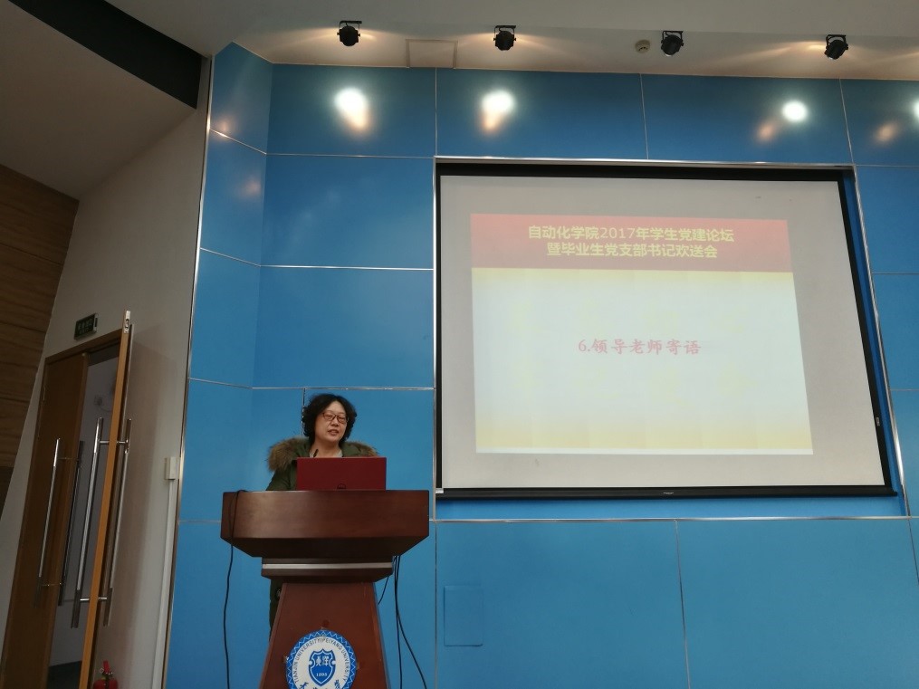 最后,院党委副书记张秀娟对学生党建工作进行指导并寄语毕业生党支部书记。首先,张秀娟肯定了党建论坛的开创性和重要性,希望以此为平台促进不同年级、不同党支部的交流分享;其次,她强调党支部书记工作的重要性,指出每一位支部书记都应加强对自己的要求,不忘初心才能更好的为人民服务,才能更好地促进个人成长和发展;第三,她强调了支委会成员分工合作的重要性,细化分工既能够为同学更好的服务,又能够为党员骨干们提供良好的锻炼平台;此外,她希望每一位学生党支部书记和党员骨干都能牢记“青年兴则国家兴,青年强则国家强”,认识到自己肩负的责任,带领每个党支部加强建设,在新的一年取得长足进步,促进学院学生党建工作水平进一步提升;她再次感谢一年来各位党支部书记的认真工作,衷心祝愿每一位毕业生党支部书记“仰望星空,脚踏实地”,在未来进一步取得良好的发展。