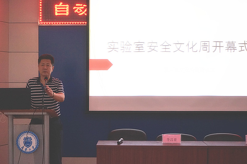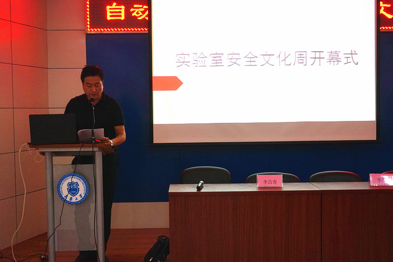 李昌青副院长在开幕式中介绍本次安全文化周的主题为“人人参与、主动防控、增强意识、共享安全”,他指出实验室安全是学院安全的重要组成部分,在学院之前举行的每次安全大检查中,实验室安全都不同程度地存在着各类隐患,不能掉以轻心。他结合学院目前的安全工作现状和具体案例,对学院策划并组织此次安全文化周活动做了简要介绍,希望通过此次活动能够提高学院师生的实验室安全意识,在全院师生心中时刻绷紧“隐患险于明火,责任重于泰山”的一根弦,在科研工作中杜绝安全隐患,打造安全、良好的实验环境。