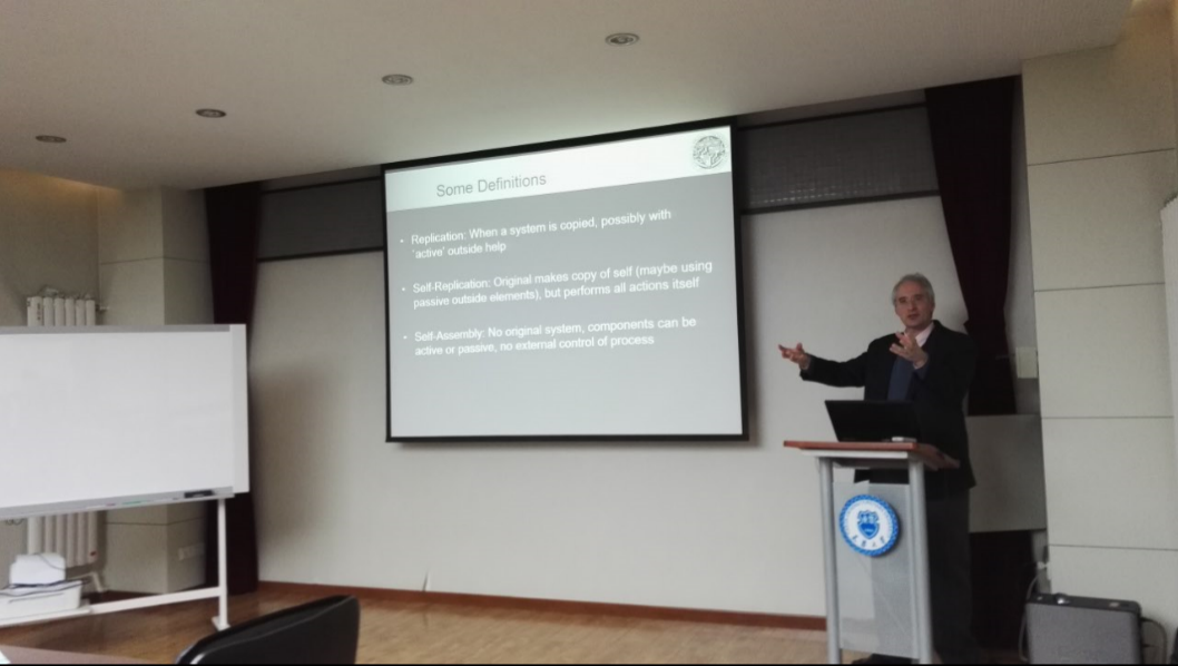 进行交流访问,并在26楼E区236会议室做了题为“Self-Replicating Robots for Lunar Development”的学术报告,学院50余名师生听取了报告。在报告中,Chirikjian教授阐述了探月自复制机器人的总体系统结构,详细介绍了实验室开发的机器人样机的结构和原理,并就自复制机器人相关研究与应用与学院师生进行了深入交流与讨论。麻豆