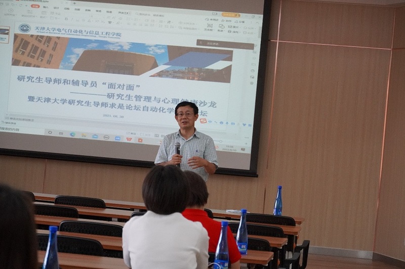 第十二届研究生“我心目中的好导师”获得者张涛老师作为优秀导师代表,从研究生招生、培养和就业三个方面与大家分享了经验,并对研究生培养过程中出现的问题进行了分析总结,鼓励青年导师以因材施教的教育方式和亦师亦友的相处模式,当好研究生成长成才的指导者和引路人。