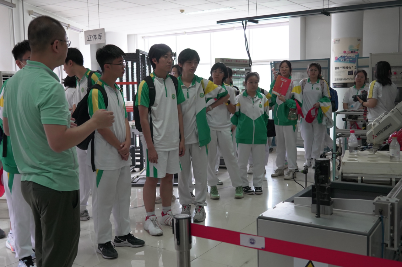 在智慧机器科普教育基地,学院教师白瑞峰介绍了模拟啤酒酿造的自动生产线,将真实工业生产过程引入到了科普教育环节,让学生在实际生产场景中了解自动化知识,并设计了互动体验环节,让同学们亲手体验了智能工业机器人的操作过程,在零距离接触中加深对于自动化技术的理解。